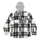 Soft flannel hooded quilted jacket fully lined. Custom snaps.