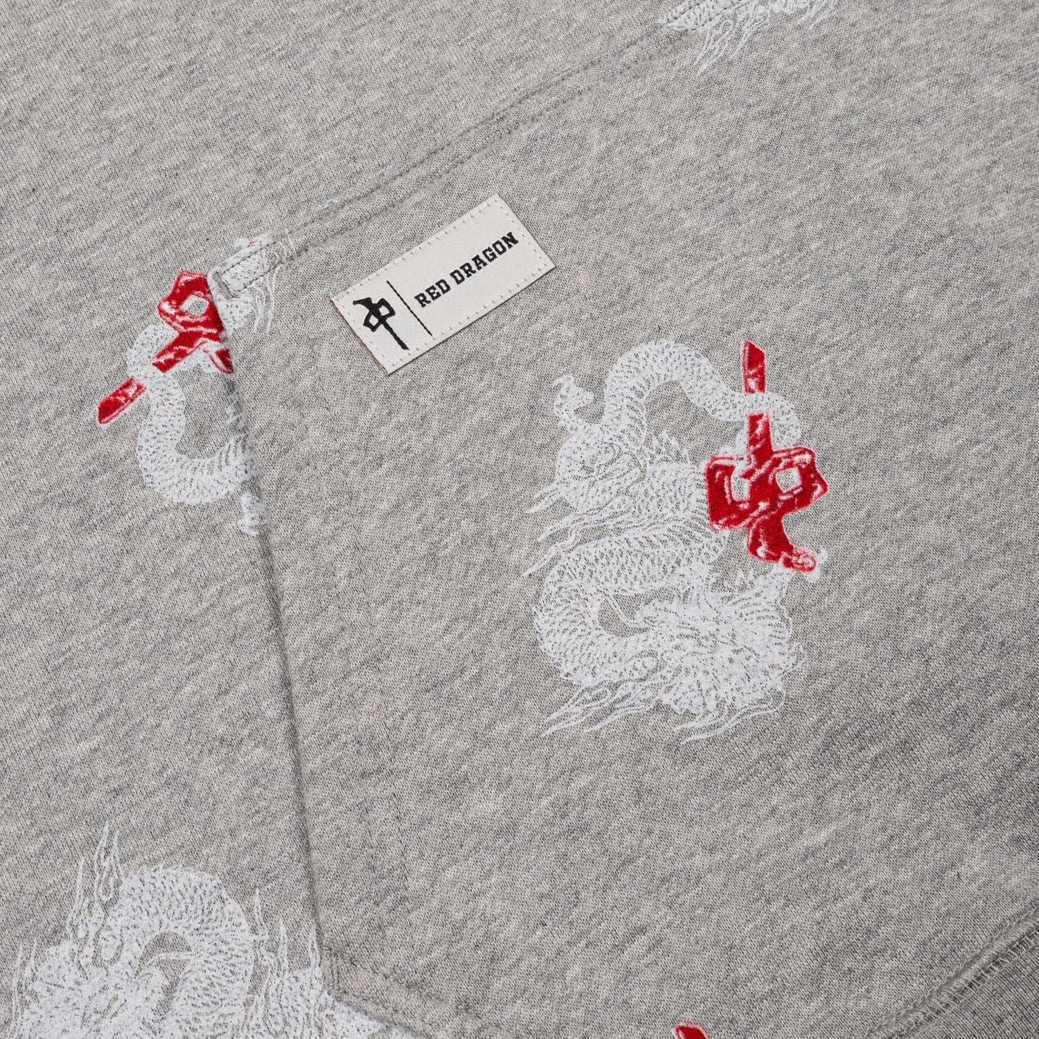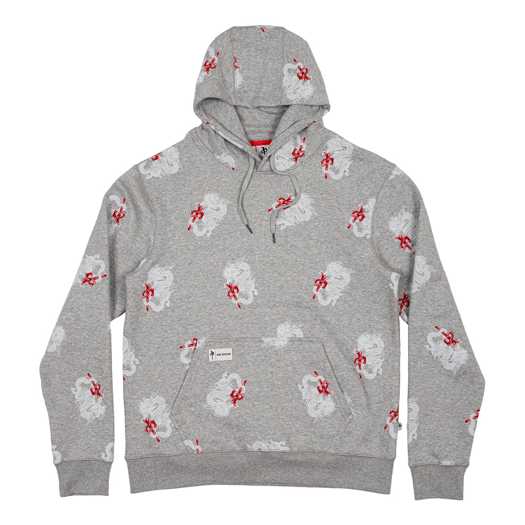 Heavier Weight 80/20 Cotton/Poly custom hooded sweatshirt with all over Red Dragon print.
